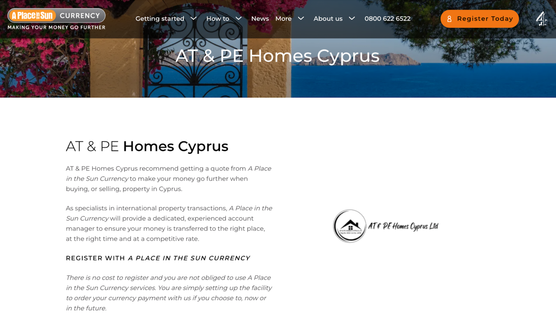 AT & PE Homes Cyprus recommend getting a quote from A Place in the Sun Currency to make your money go further when buying, or selling, property in Cyprus.