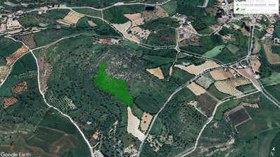 This agricultural field covers a total land area of 13,044 m² and is situated approximately 700 meters from the village center and is landlocked The property has an irregular shape, sloping slightly towards south offering nice views of the surrounding area. It falls within the Agricultural zone Γ3 with a building coefficient of 10%, coverage of 10%, and the possibility to build up to two floors of 8.3 meters. The property is surrounded by empty agricultural blocks and sporadic residential developments.