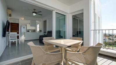 From the apartment, you can enjoy beautiful sea views and benefit from access to a communal swimming pool and a private covered parking space. The building is equipped with an elevator for easy access, and the apartment includes air conditioning for year-round comfort. Ideally located just five minutes by car from the beach, ten minutes from the town center, and thirty minutes from both the airport and local golf courses, this property offers a convenient and relaxed lifestyle. With title deeds available and no VAT applicable, it represents a smart and stress-free purchase in one of Paphos's most desirable locations.