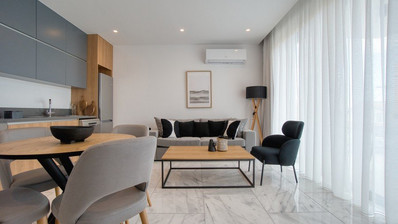 Nestled in a quiet residential area of Paphos, this four-floor development consists of 7 spacious and contemporary one- and two-bedroom apartments. With only 7 units in total, this superb project boasts just 2 apartments per floor. The top floor consists of a single two-bedroom penthouse with a large roof terrace offering unparalleled sea and mountain views. All residences are finished with an array of stylish features including marble and wooden floors, granite worktops, hand crafted wood kitchen and wardrobes and the finest sanitary fittings. The combination of these luxurious properties and the unbeatable location make this an ideal investment for either buy to let or permanent living.
