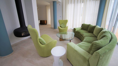This new spacious 5-bedroom villa is located in one of the beautiful areas of Chloraki with stunning views of the sea and the lower town of Paphos. On the ground floor, there is a spacious living room with a fireplace and floor-to-ceiling windows, a dining area with an equipped kitchen, a guest toilet, 2 spacious bedrooms, and a shared bathroom with a bath and a shower. On the first floor, you will also find 3 large bedrooms with bathrooms and a sitting area. The last floor of the villa has access to a huge roof with stunning sea views. On the territory, there is parking, a swimming pool, and outdoor recreation areas. The villa is equipped and furnished with everything necessary for a comfortable stay.