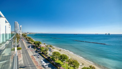 A luxury apartment for sale at Molos area, Limassol. It is located in a prime location within walking distance to the beach, Limassol marina and the old town. Everything you need! The apartment is on the 7th floor which is the top floor where it offers panoramic views from every corner with its floor to ceiling windows. Offered fully furnished to the highest standards. It consists of 3 bedrooms all with their own en suites and storage, a huge open plan space which consists of a fully equipped kitchen with Miele appliances, living area, dining area, bar and private covered balcony right opposite the sea.