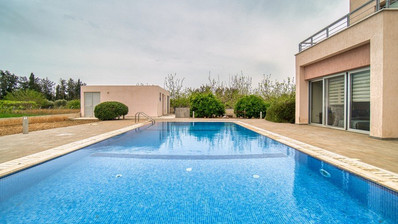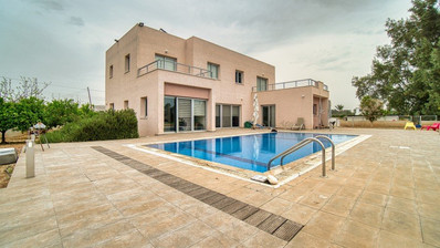 Nestled in the beautiful setting of Geroskipou village, in a very quiet neighbor hood this 4+1 bedroom, modernly designed Villa is available for sale. The residence offers a wide range of local amenities in the surrounding area. The Villa covers a total area of 300 m² and sits on a large plot of 4,300 m². Built on 2 levels, the property features a modern kitchen, separated living room, siting and dining area on the ground floor, as well as 1 bedroom and an extra room which is currently used as office room. There is also a large veranda, from where you can enjoy landscaped garden and swimming pool. On the second floor there are 3 bedrooms where includes en-suite facilities. Additional benefits include walk-in closet and extra store room. The outside space offers a beautifully landscaped gardens and a big swimming pool. The villa is ideal for families as it combines spacious rooms and luxury with easy access to Paphos city center.