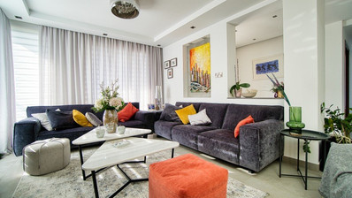 Modern design villa 248 sq.m (covered area) 315 sq. m. total premises area in Tsada, built in a plot of 1619 sq. m. It has stunning panoramic sea and mountain views. Located on the drive up to Tsada, set on a hillside (Olympus). The house is approximately 10 min. drive north of Paphos, 10 min. drive to Tsada Golf Club and 5 min drive to the International School. Its a 3 level property situated at the end of a private road, with a split driveway, one leading to the main entrance and the other to the lower basement area with two-car covered parking, which can be converted into a self-contained apartment. Entering (2nd level), the house has a spacious living/dining room and a second lounge (family room). On the same level there is a study room and a guest WC, plus a large covered balcony with amazing sea view and double access from the dining area and the living/family room. At the back of the house, outside the kitchen, there is a covered patio with al fresco dining and a large garden area and a built-in BBQ. Upstairs there are 3 double bedrooms, full family bathroom, en-suite bathroom in the master bedroom with a corner bath/jacuzzi and a feature cubical shower, walk-in wardrobe and access to another sea view balcony. On the same floor there is a laundry room. At the lower basement area behind the garage port and attached to the property, there is a service/maid or storage room with a WC. At the same level at the very rear of the house, there is a 200 sq.m. landscaped garden with grown up local trees/flowers. Features: Italian manufactured floors-granite worktops, full thermal insulation, underfloor gas central heating, water pressure system and water filter under kitchen cabinet, double glazing, fireplace, utility room, ac units, security system with alarm, photovoltaic system of 7.9 KW, bbq area at kitchen level, permission to construct a private swimming pool, borehole, irrigation system, title deeds. Furniture and electrical appliances are negotiable.