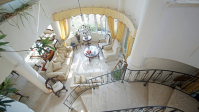 7 bedroom 3 bathroom 370m2 covered detached villa situated in heart of Chloraka close to the St.George Hotel and a short drive to Coral Bay. The villa is situated on a 2676m2 plot ,just a few hundred meters from the beachfront and benefits from air conditioning, study, marble stairs and private pool. Through the front door you enter into the entrance hall with extremely bright living area, to the right hand side, curving stairs rising to the first floor where are located 3 double bedrooms, family bathroom, 2 balconies. Ground floor comprises from separate spacious kitchen with a small sitting area offering a fire place, master bedroom, guest toilet, 2 rooms witch can be used as an office or a gym room.