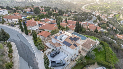 A luxury 6 bedroom villa, located in the center of the village of Tsada in Paphos, built in a 700m. The house is fully airconditioned and has a fireplace in the living room. Downstairs, there is a large open living room area, with a fitted kitchen and a guest WC. It also contains an area for a large dining table. A marble staircase leads to the first floor, where is bedrooms with the fitted wardrobes are. The village of Tsada is about 10 kilometers away from Paphos. Tsada has a school, bank, cafes and a golf course, which is only a few minutes’ drive away.