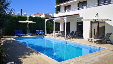As you enter you will find yourself in a modernly furnished living area, which glass patio doors will lead you to terrace where al fresco dining can be enjoyed whilst admiring the mesmerizing views of the garden and pool. When reaching the first floor via the stairs there are 3 bedrooms. A master bedroom with king size bed, en-suite with a pool views. Completing the bedrooms on this floor are a further 1 double and 1 twin bedrooms. The outside area can be accessed from the ground floor where you will find the backyard garden area furnished with sunbeds and the private swimming pool.Air conditioning is available throughout the villa. The villa offers private parking.